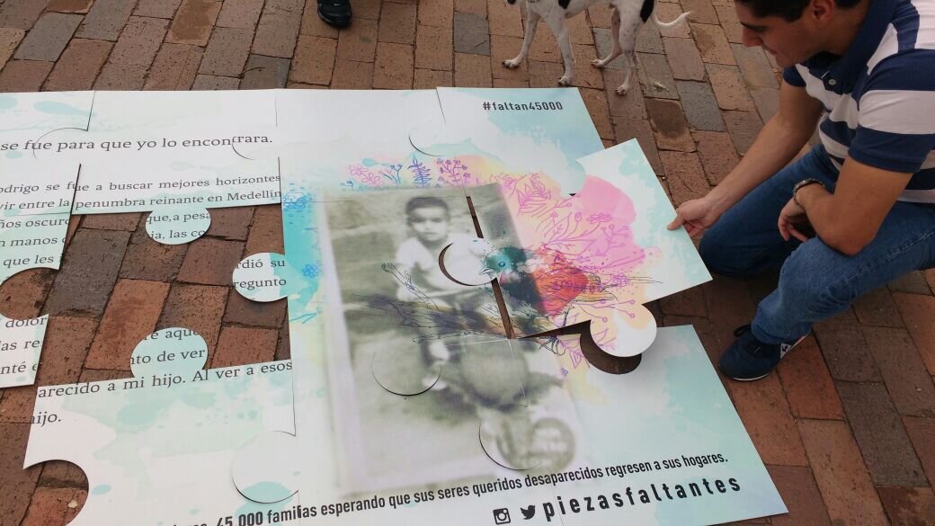 The following stage takes place with the puzzle, which allows the connection with the general public. The puzzle is used as the tool to conduct a public intervention in which participants are engaged through a collaborative activity that serves as a metaphor for missing people's actions to find their loved ones.